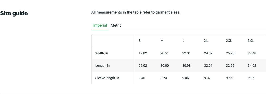 | Sleeve length, in | 8.47 | 8.75 | 9.06 | 9.38 | 9.65 | 9.97 |